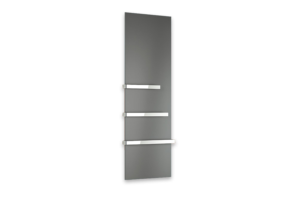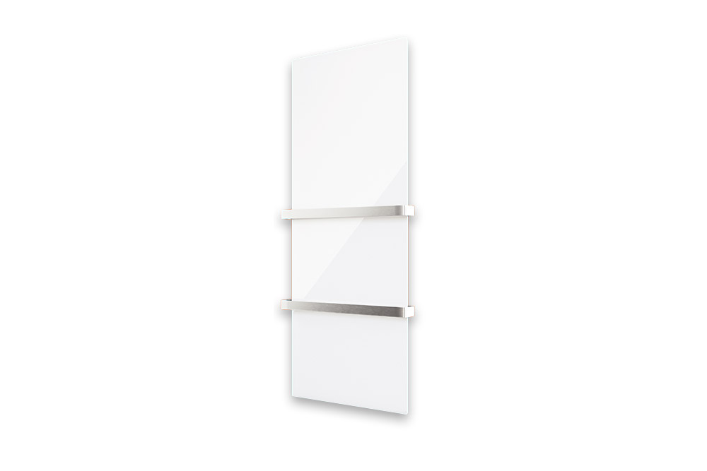 Met een dikte van slechts 1,7 cm oogt het paneel strak en minimalistisch. Standaard worden twee handdoekbeugels van geborsteld RVS meegeleverd (bij wit optioneel in wit).